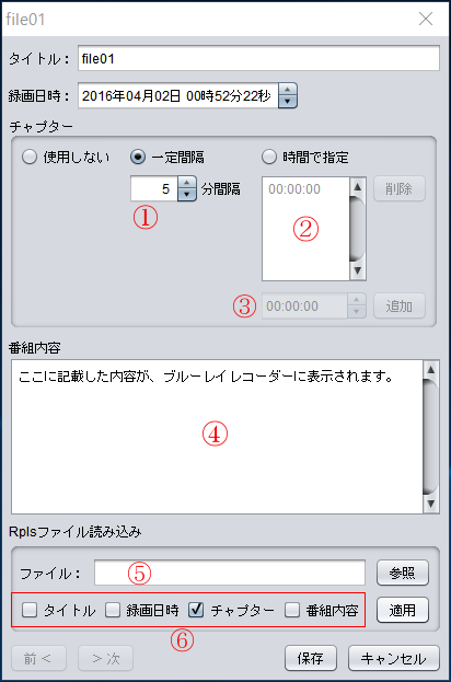 チャプター及び番組内容をファイル毎に編集します。